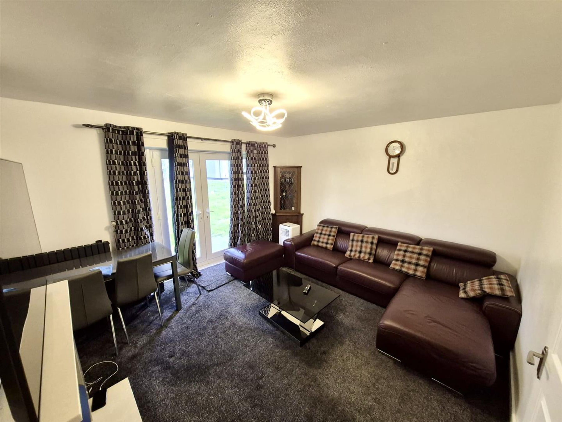 Living Room - 4.02 x 3.77 (13'2" x 12'4") - Grey carpet, double glazed French doors, electric fire in fireplace