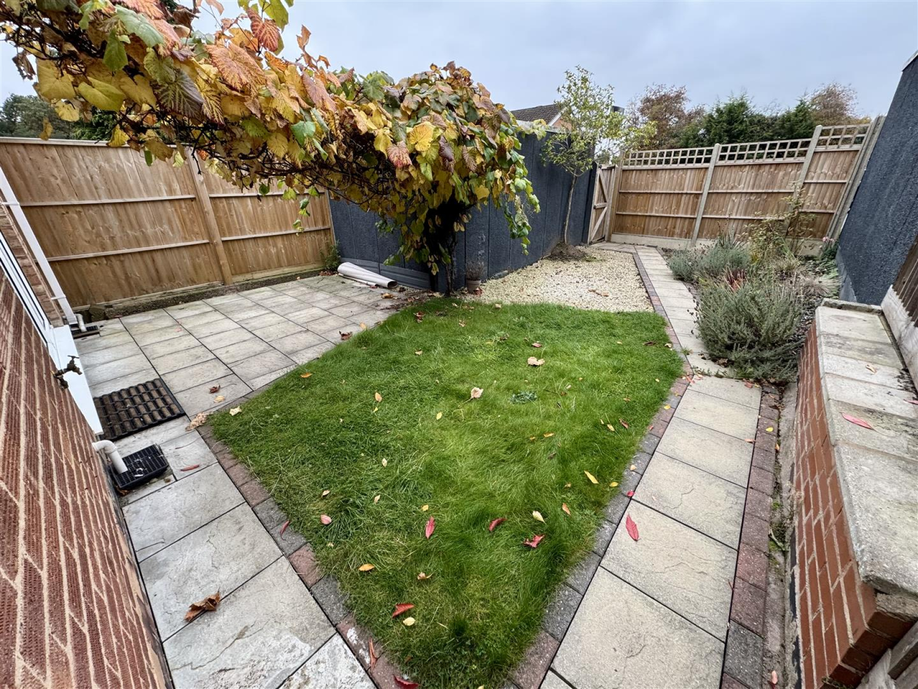 Garden - Landscaped garden with a beautiful grapevine going across. There is a patio and stoned area, lawn, fence surrounds and gated access to the front and rear of the property.