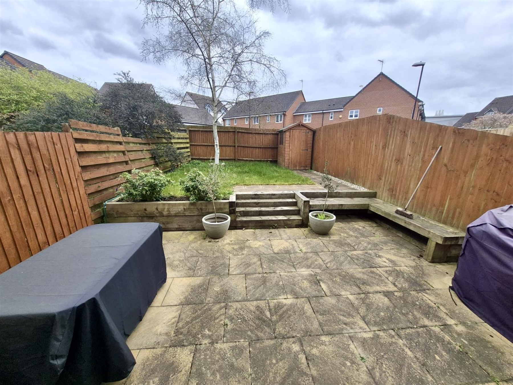 Garden - Raised grass area with shed, patio, fence surrounds and side gated access