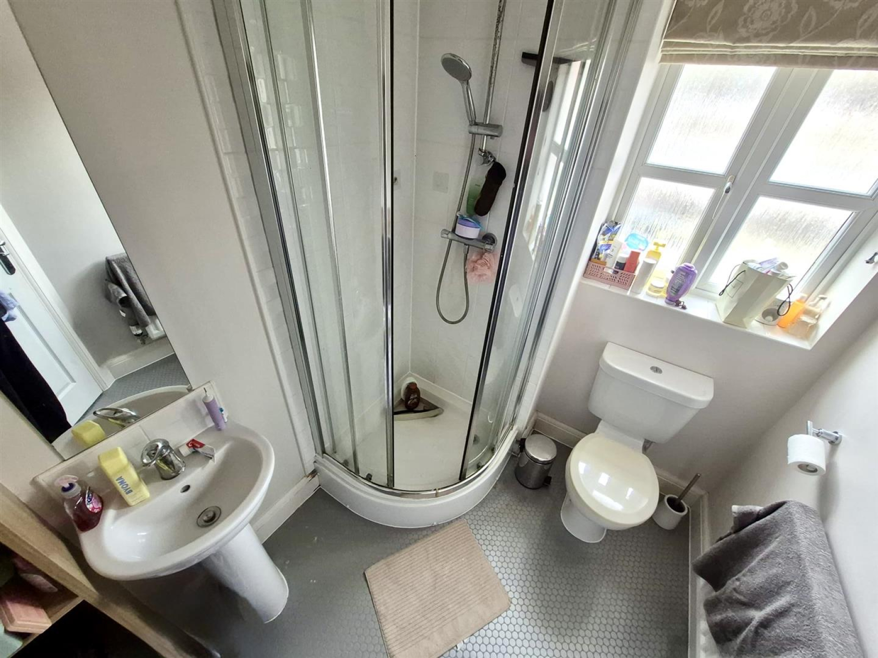 En-Suite - 1.77 x 1.36 (5'9" x 4'5" ) - Laminate flooring, single radiator, double glazed window, white suite which features shower cubicle, low level W.C and pedestal wash basin.