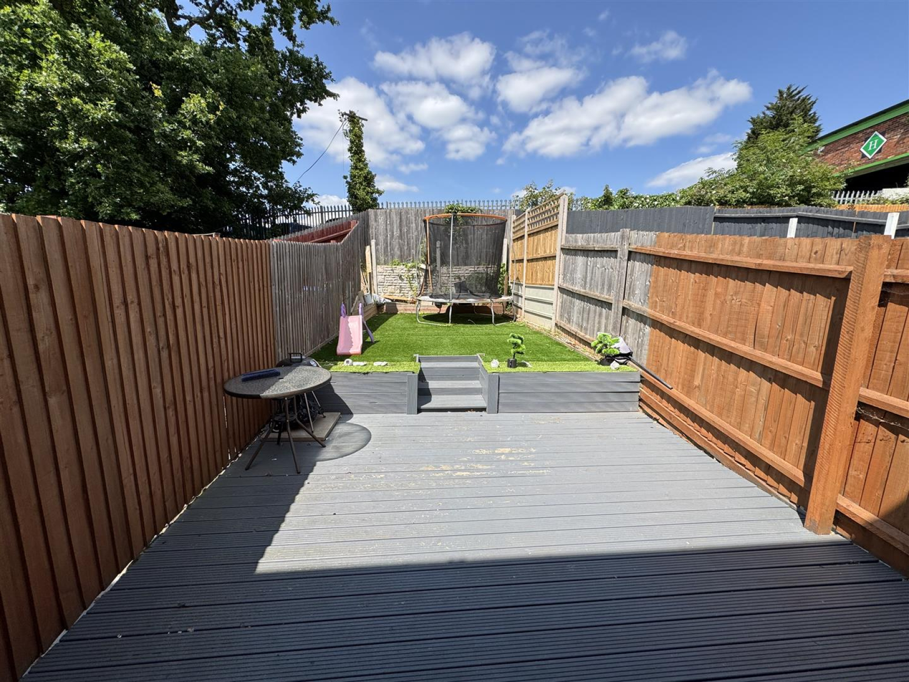 Rear Garden - Low maintenance garden with decking and Astro turf. Fence surrounds. Gate for rear access.