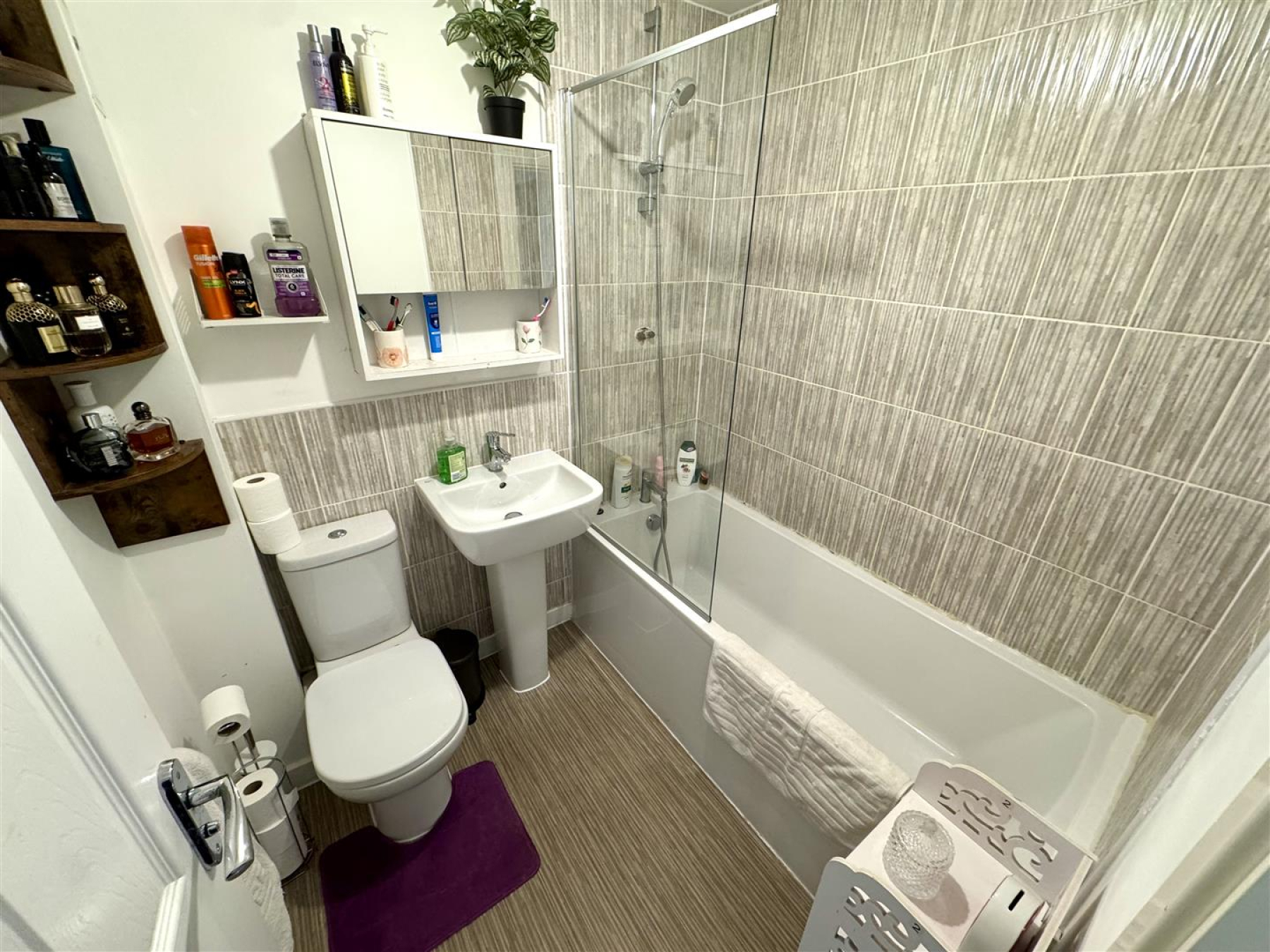 W/C - 1.502 x 0.994 (4'11" x 3'3") - Low level W.C. wash hand basin with tiled splash back, laminate flooring, central heating radiator and double glazed window to the front aspect.